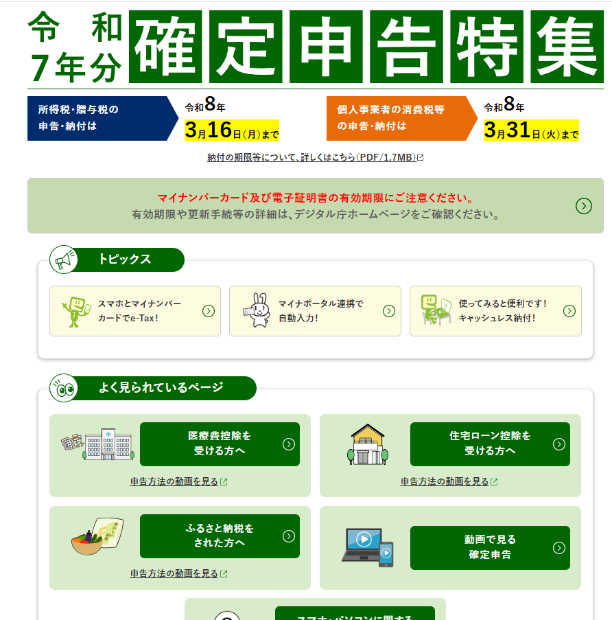 令和7年分確定申告の案内・国税庁HPより画像引用